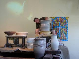He then began to demonstrate throwing a pot - a very physical, demanding job. The potter must be focused, must concentrate, feel for and identify any impurities in the clay and pull them out. The clay must be firmly centered (on Jesus) or it will collapse. The clay requires lots of water.